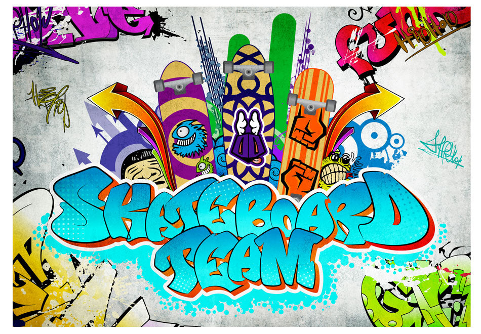 Bekijk hoe je het fotobehang "Fotobehang - Skateboard team" stap voor stap monteert.