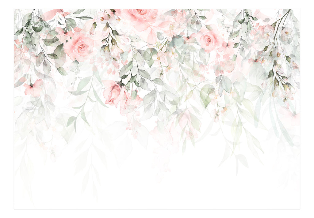 Bekijk hoe je het fotobehang "Fotobehang - Waterfall of Roses - First Variant" stap voor stap monteert.