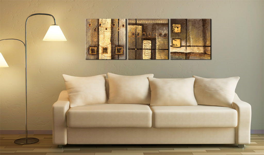Handgeschilderd schilderij "Handgeschilderd schilderij - Gold samenstelling" is een combinatie van hoge kwaliteit en uniekheid. Elk handgeschilderd schilderij wordt vervaardigd door ervaren schilders op individuele bestelling van de klant. Dankzij de unieke stijl van penseelstreken van de artiest, krijgen schilderijen een uniek karakter. Als je dus op zoek bent naar een bijzondere decoratie van je woning of kantoor, zijn handgeschilderde schilderijen op doek de ideale aanvulling op jouw interieur. Vooral wanneer jouw woonvertrek, slaapkamer of kantoor een vergelijkbare stijl heeft.