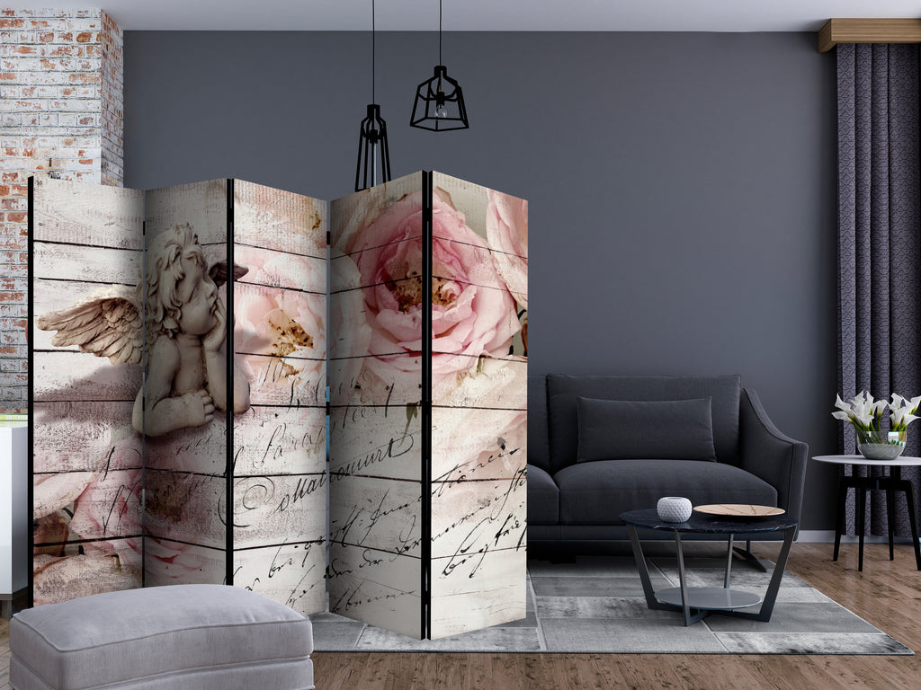 Het decoratieve vouwscherm "Vouwscherm - Angel and Calm II [Room Dividers]" past uitzonderlijk mooi in een modern interieur. Het houten tweezijdig bedrukte vouwscherm geeft niet alleen een mooie opdeling van een ruimte maar geeft ook een fantastische flair aan uw interieur. De perfectie uitvoering en het originele motief in full HD uitvoering zorgen ervoor dat de kamervouwschermen iedere ruimte een originele charme verschaffen. Een prachtig kamervouwscherm is een zeer originele versiering en kan bijvoorbeeld prima worden toegepast in woningen of dienstruimten. (kapsalon, dokterskliniek, administratiekantoor etc)