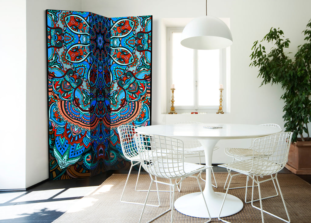 Het decoratieve vouwscherm "Vouwscherm - Blue Fantasy [Room Dividers]" past uitzonderlijk mooi in een modern interieur. Het houten driedelige en tweezijdig bedrukte vouwscherm geeft niet alleen een mooie opdeling van een ruimte maar geeft ook een fantastische flair aan uw interieur. De perfectie uitvoering en het originele motief in full HD uitvoering zorgen ervoor dat de kamervouwschermen iedere ruimte een originele charme verschaffen. Een prachtig kamervouwscherm is een zeer originele versiering en kan bijvoorbeeld prima worden toegepast in woningen of dienstruimten. (kapsalon, dokterskliniek, administratiekantoor etc)