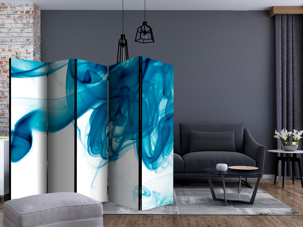 Het decoratieve vouwscherm "Vouwscherm - Blue smoke II [Room Dividers]" past uitzonderlijk mooi in een modern interieur. Het houten tweezijdig bedrukte vouwscherm geeft niet alleen een mooie opdeling van een ruimte maar geeft ook een fantastische flair aan uw interieur. De perfectie uitvoering en het originele motief in full HD uitvoering zorgen ervoor dat de kamervouwschermen iedere ruimte een originele charme verschaffen. Een prachtig kamervouwscherm is een zeer originele versiering en kan bijvoorbeeld prima worden toegepast in woningen of dienstruimten. (kapsalon, dokterskliniek, administratiekantoor etc)