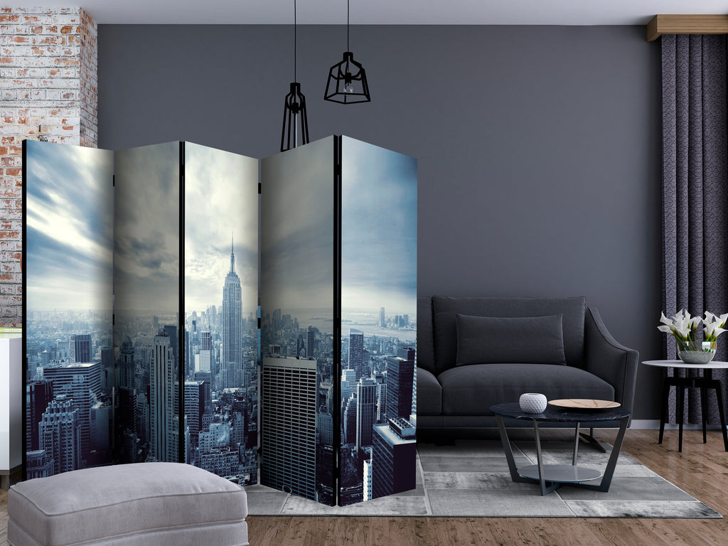 Het decoratieve vouwscherm "Vouwscherm - Blue York II [Room Dividers]" past uitzonderlijk mooi in een modern interieur. Het houten tweezijdig bedrukte vouwscherm geeft niet alleen een mooie opdeling van een ruimte maar geeft ook een fantastische flair aan uw interieur. De perfectie uitvoering en het originele motief in full HD uitvoering zorgen ervoor dat de kamervouwschermen iedere ruimte een originele charme verschaffen. Een prachtig kamervouwscherm is een zeer originele versiering en kan bijvoorbeeld prima worden toegepast in woningen of dienstruimten. (kapsalon, dokterskliniek, administratiekantoor etc)
