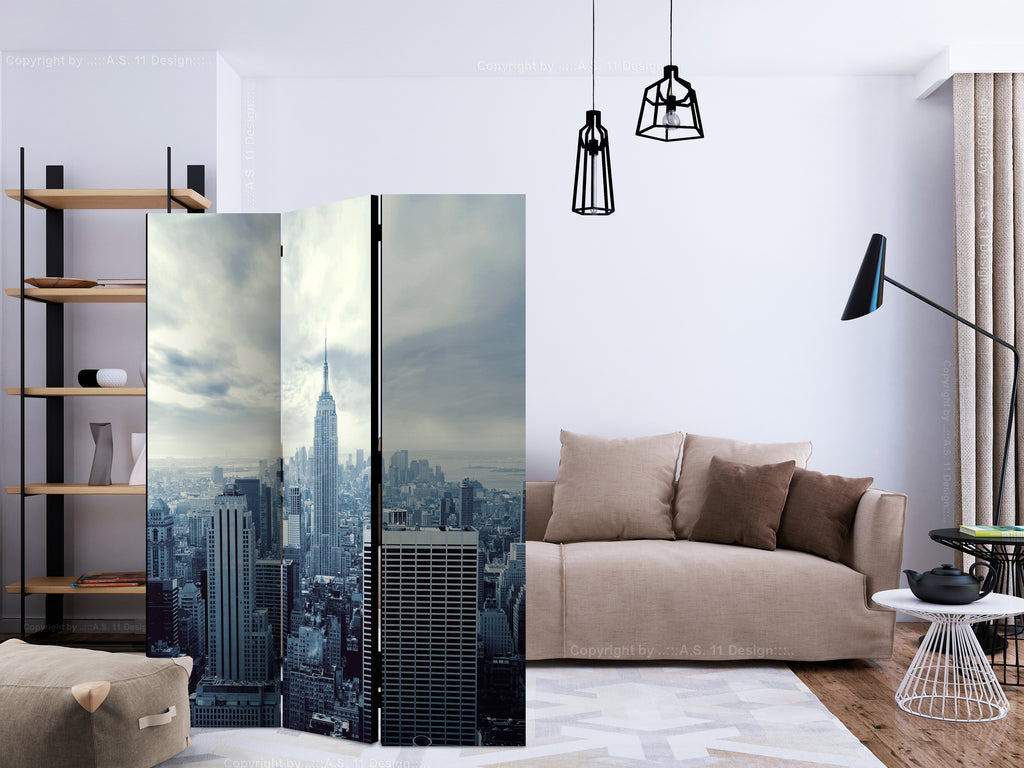 Het decoratieve vouwscherm "Vouwscherm - Blue York [Room Dividers]" past uitzonderlijk mooi in een modern interieur. Het houten driedelige en tweezijdig bedrukte vouwscherm geeft niet alleen een mooie opdeling van een ruimte maar geeft ook een fantastische flair aan uw interieur. De perfectie uitvoering en het originele motief in full HD uitvoering zorgen ervoor dat de kamervouwschermen iedere ruimte een originele charme verschaffen. Een prachtig kamervouwscherm is een zeer originele versiering en kan bijvoorbeeld prima worden toegepast in woningen of dienstruimten. (kapsalon, dokterskliniek, administratiekantoor etc)