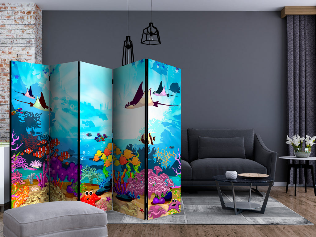 Het decoratieve vouwscherm "Vouwscherm - Colourful Fish II [Room Dividers]" past uitzonderlijk mooi in een modern interieur. Het houten tweezijdig bedrukte vouwscherm geeft niet alleen een mooie opdeling van een ruimte maar geeft ook een fantastische flair aan uw interieur. De perfectie uitvoering en het originele motief in full HD uitvoering zorgen ervoor dat de kamervouwschermen iedere ruimte een originele charme verschaffen. Een prachtig kamervouwscherm is een zeer originele versiering en kan bijvoorbeeld prima worden toegepast in woningen of dienstruimten. (kapsalon, dokterskliniek, administratiekantoor etc)