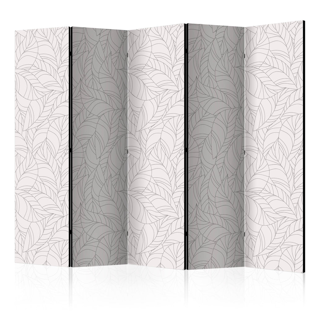 Het decoratieve vouwscherm "Vouwscherm - Colourless Leaves II [Room Dividers]" past uitzonderlijk mooi in een modern interieur. Het houten tweezijdig bedrukte vouwscherm geeft niet alleen een mooie opdeling van een ruimte maar geeft ook een fantastische flair aan uw interieur. De perfectie uitvoering en het originele motief in full HD uitvoering zorgen ervoor dat de kamervouwschermen iedere ruimte een originele charme verschaffen. Een prachtig kamervouwscherm is een zeer originele versiering en kan bijvoorbeeld prima worden toegepast in woningen of dienstruimten. (kapsalon, dokterskliniek, administratiekantoor etc)