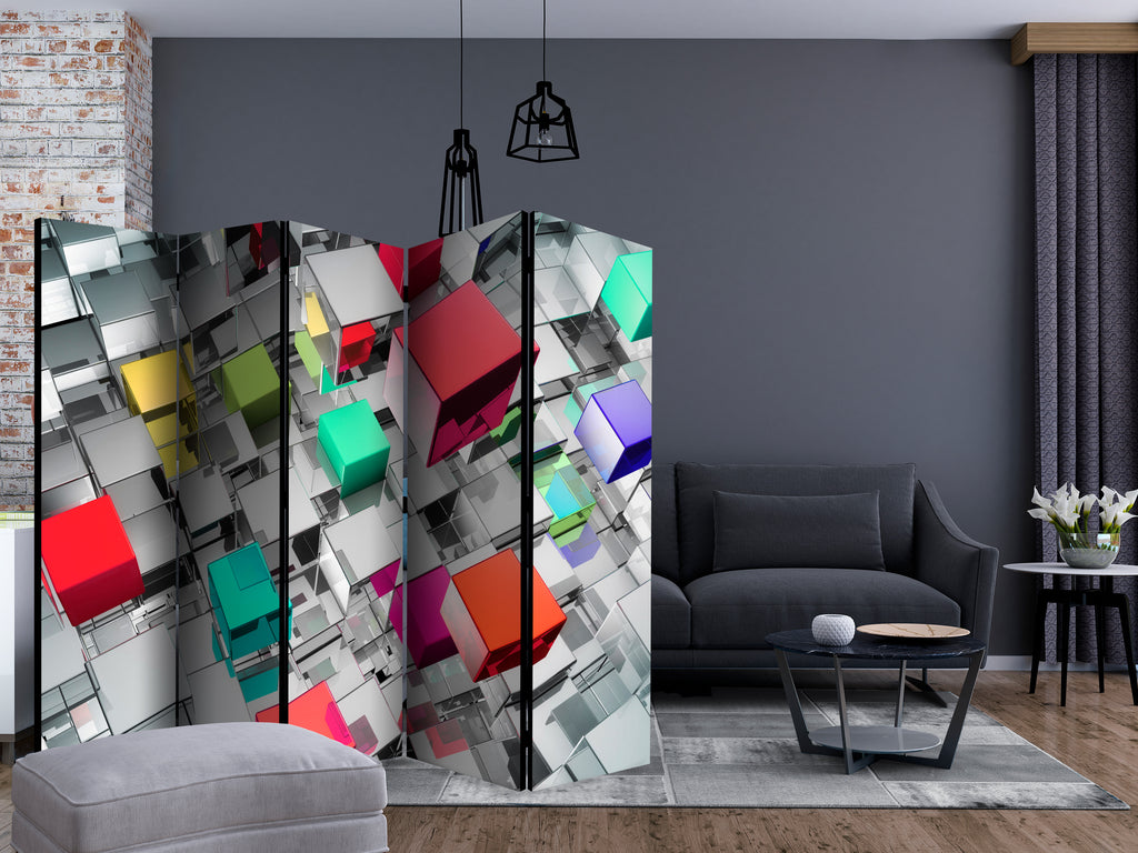 Het decoratieve vouwscherm "Vouwscherm - Colours of Metal II [Room Dividers]" past uitzonderlijk mooi in een modern interieur. Het houten tweezijdig bedrukte vouwscherm geeft niet alleen een mooie opdeling van een ruimte maar geeft ook een fantastische flair aan uw interieur. De perfectie uitvoering en het originele motief in full HD uitvoering zorgen ervoor dat de kamervouwschermen iedere ruimte een originele charme verschaffen. Een prachtig kamervouwscherm is een zeer originele versiering en kan bijvoorbeeld prima worden toegepast in woningen of dienstruimten. (kapsalon, dokterskliniek, administratiekantoor etc)