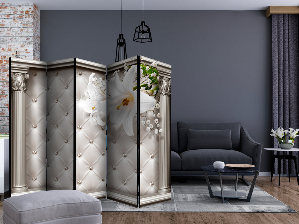 Het decoratieve vouwscherm "Vouwscherm - Columnar Stage II [Room Dividers]" past uitzonderlijk mooi in een modern interieur. Het houten tweezijdig bedrukte vouwscherm geeft niet alleen een mooie opdeling van een ruimte maar geeft ook een fantastische flair aan uw interieur. De perfectie uitvoering en het originele motief in full HD uitvoering zorgen ervoor dat de kamervouwschermen iedere ruimte een originele charme verschaffen. Een prachtig kamervouwscherm is een zeer originele versiering en kan bijvoorbeeld prima worden toegepast in woningen of dienstruimten. (kapsalon, dokterskliniek, administratiekantoor etc)
