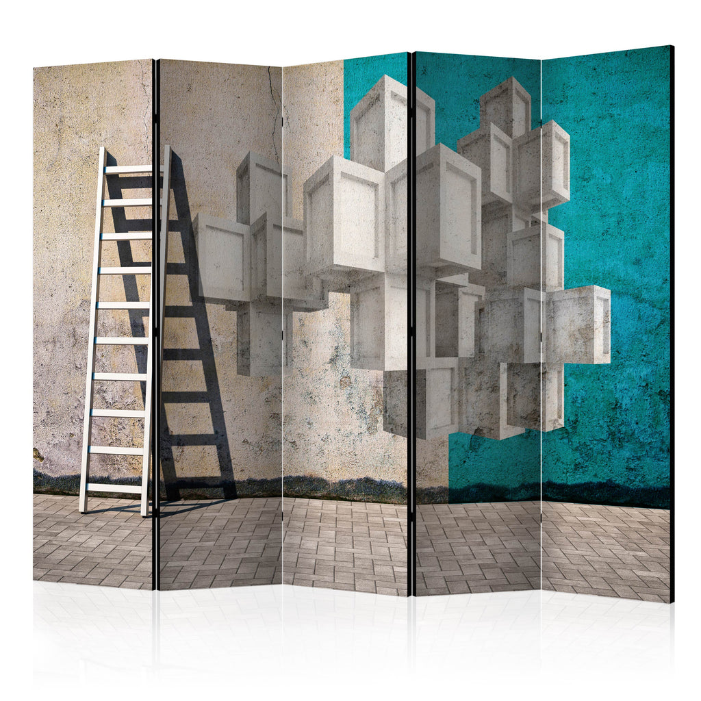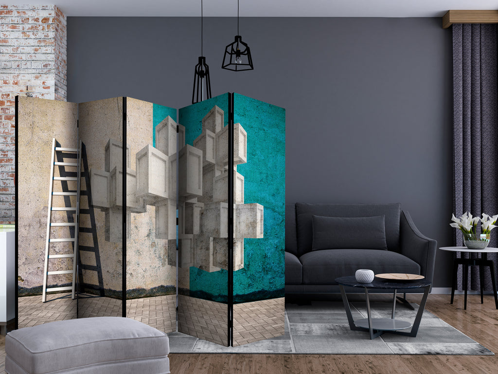 Het decoratieve vouwscherm "Vouwscherm - Concrete blocks II [Room Dividers]" past uitzonderlijk mooi in een modern interieur. Het houten tweezijdig bedrukte vouwscherm geeft niet alleen een mooie opdeling van een ruimte maar geeft ook een fantastische flair aan uw interieur. De perfectie uitvoering en het originele motief in full HD uitvoering zorgen ervoor dat de kamervouwschermen iedere ruimte een originele charme verschaffen. Een prachtig kamervouwscherm is een zeer originele versiering en kan bijvoorbeeld prima worden toegepast in woningen of dienstruimten. (kapsalon, dokterskliniek, administratiekantoor etc)