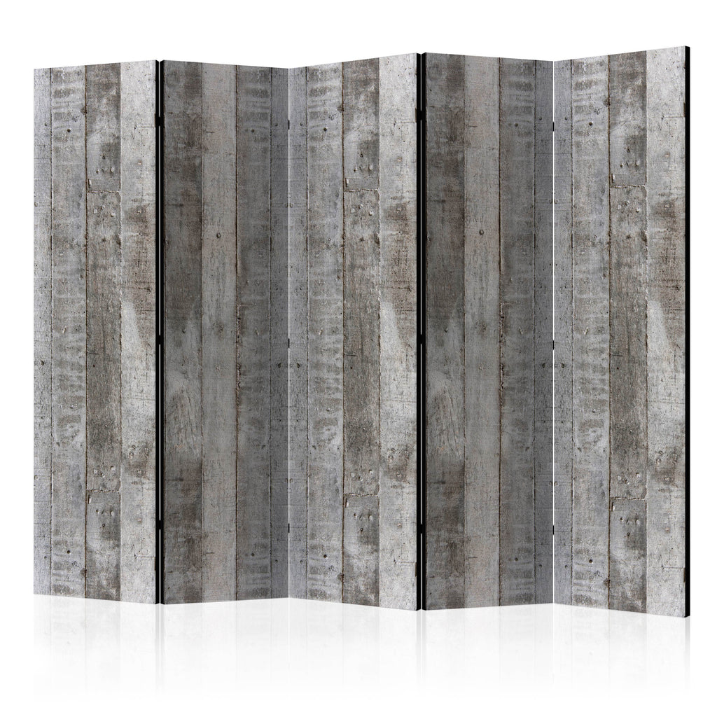 Het decoratieve vouwscherm "Vouwscherm - Concrete Timber II [Room Dividers]" past uitzonderlijk mooi in een modern interieur. Het houten tweezijdig bedrukte vouwscherm geeft niet alleen een mooie opdeling van een ruimte maar geeft ook een fantastische flair aan uw interieur. De perfectie uitvoering en het originele motief in full HD uitvoering zorgen ervoor dat de kamervouwschermen iedere ruimte een originele charme verschaffen. Een prachtig kamervouwscherm is een zeer originele versiering en kan bijvoorbeeld prima worden toegepast in woningen of dienstruimten. (kapsalon, dokterskliniek, administratiekantoor etc)