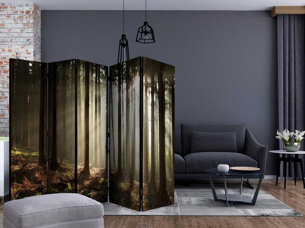 Het decoratieve vouwscherm "Vouwscherm - Coniferous forest II [Room Dividers]" past uitzonderlijk mooi in een modern interieur. Het houten tweezijdig bedrukte vouwscherm geeft niet alleen een mooie opdeling van een ruimte maar geeft ook een fantastische flair aan uw interieur. De perfectie uitvoering en het originele motief in full HD uitvoering zorgen ervoor dat de kamervouwschermen iedere ruimte een originele charme verschaffen. Een prachtig kamervouwscherm is een zeer originele versiering en kan bijvoorbeeld prima worden toegepast in woningen of dienstruimten. (kapsalon, dokterskliniek, administratiekantoor etc)