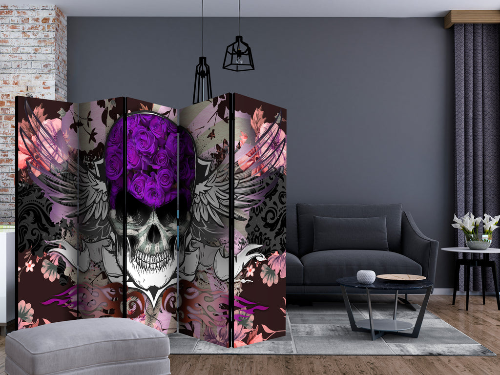 Het decoratieve vouwscherm "Vouwscherm - Corpse Skull II [Room Dividers]" past uitzonderlijk mooi in een modern interieur. Het houten tweezijdig bedrukte vouwscherm geeft niet alleen een mooie opdeling van een ruimte maar geeft ook een fantastische flair aan uw interieur. De perfectie uitvoering en het originele motief in full HD uitvoering zorgen ervoor dat de kamervouwschermen iedere ruimte een originele charme verschaffen. Een prachtig kamervouwscherm is een zeer originele versiering en kan bijvoorbeeld prima worden toegepast in woningen of dienstruimten. (kapsalon, dokterskliniek, administratiekantoor etc)