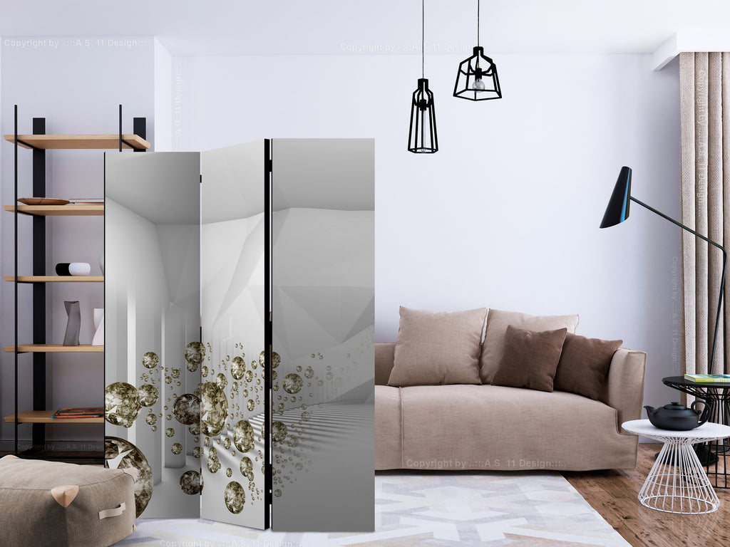 Het decoratieve vouwscherm "Vouwscherm - Corridor of Diamonds [Room Dividers]" past uitzonderlijk mooi in een modern interieur. Het houten driedelige en tweezijdig bedrukte vouwscherm geeft niet alleen een mooie opdeling van een ruimte maar geeft ook een fantastische flair aan uw interieur. De perfectie uitvoering en het originele motief in full HD uitvoering zorgen ervoor dat de kamervouwschermen iedere ruimte een originele charme verschaffen. Een prachtig kamervouwscherm is een zeer originele versiering en kan bijvoorbeeld prima worden toegepast in woningen of dienstruimten. (kapsalon, dokterskliniek, administratiekantoor etc)