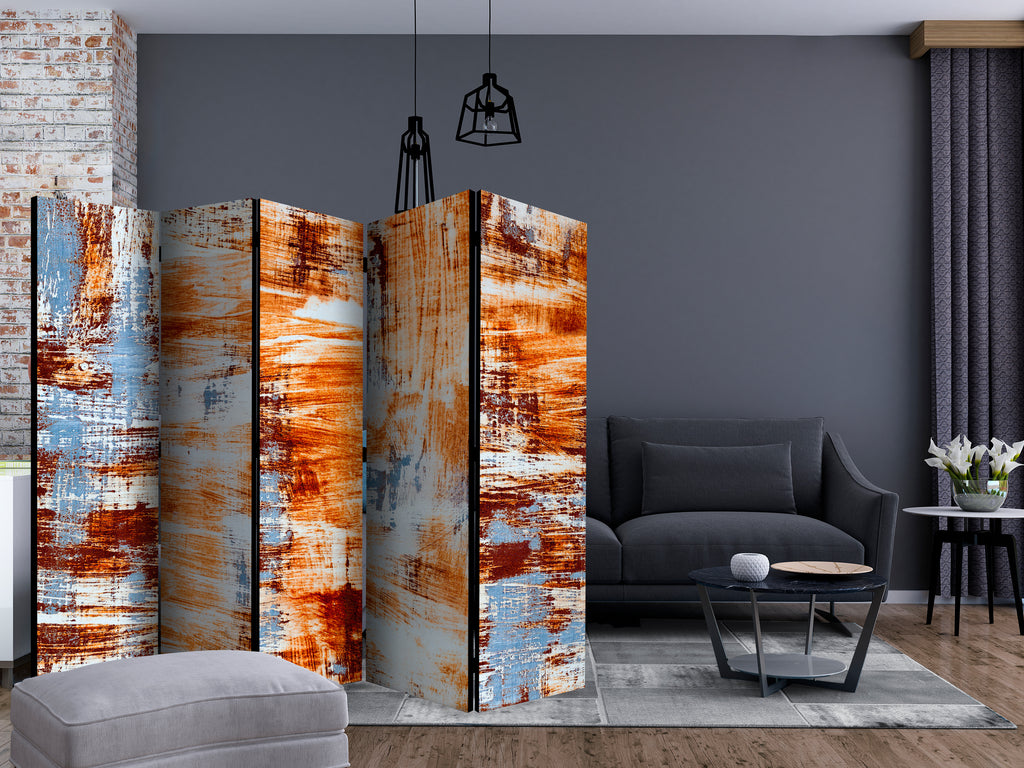 Het decoratieve vouwscherm "Vouwscherm - Corrosion II [Room Dividers]" past uitzonderlijk mooi in een modern interieur. Het houten tweezijdig bedrukte vouwscherm geeft niet alleen een mooie opdeling van een ruimte maar geeft ook een fantastische flair aan uw interieur. De perfectie uitvoering en het originele motief in full HD uitvoering zorgen ervoor dat de kamervouwschermen iedere ruimte een originele charme verschaffen. Een prachtig kamervouwscherm is een zeer originele versiering en kan bijvoorbeeld prima worden toegepast in woningen of dienstruimten. (kapsalon, dokterskliniek, administratiekantoor etc)