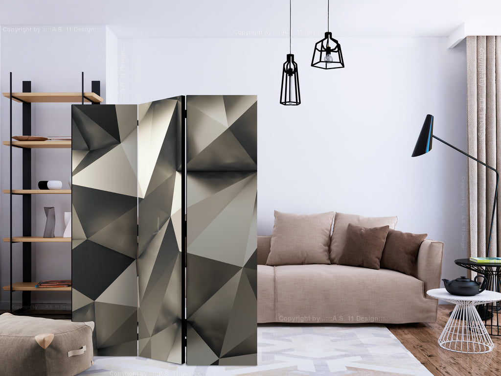 Het decoratieve vouwscherm "Vouwscherm - Cosmic Silver [Room Dividers]" past uitzonderlijk mooi in een modern interieur. Het houten driedelige en tweezijdig bedrukte vouwscherm geeft niet alleen een mooie opdeling van een ruimte maar geeft ook een fantastische flair aan uw interieur. De perfectie uitvoering en het originele motief in full HD uitvoering zorgen ervoor dat de kamervouwschermen iedere ruimte een originele charme verschaffen. Een prachtig kamervouwscherm is een zeer originele versiering en kan bijvoorbeeld prima worden toegepast in woningen of dienstruimten. (kapsalon, dokterskliniek, administratiekantoor etc)