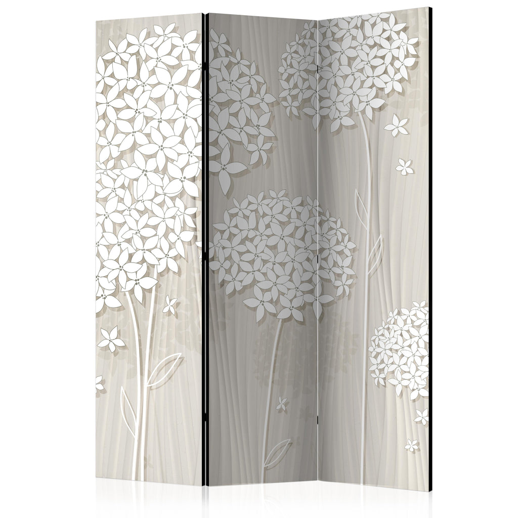Het decoratieve vouwscherm "Vouwscherm - Creamy Daintiness [Room Dividers]" past uitzonderlijk mooi in een modern interieur. Het houten driedelige en tweezijdig bedrukte vouwscherm geeft niet alleen een mooie opdeling van een ruimte maar geeft ook een fantastische flair aan uw interieur. De perfectie uitvoering en het originele motief in full HD uitvoering zorgen ervoor dat de kamervouwschermen iedere ruimte een originele charme verschaffen. Een prachtig kamervouwscherm is een zeer originele versiering en kan bijvoorbeeld prima worden toegepast in woningen of dienstruimten. (kapsalon, dokterskliniek, administratiekantoor etc)