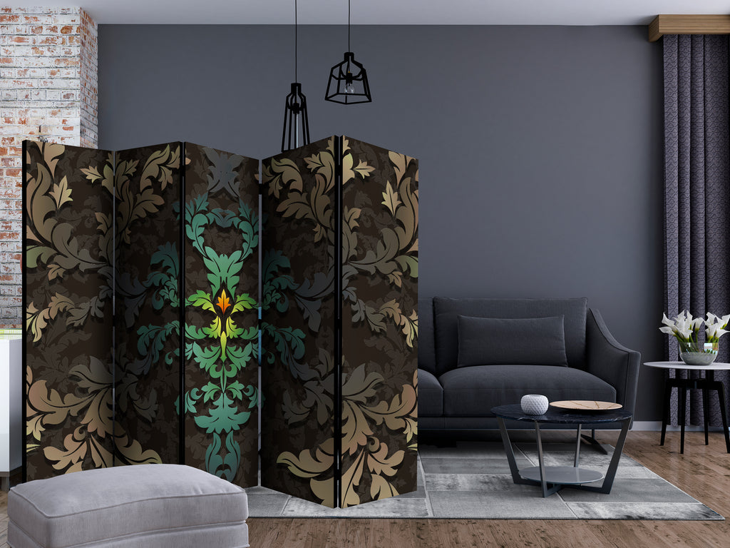 Het decoratieve vouwscherm "Vouwscherm - Dancing leaves II [Room Dividers]" past uitzonderlijk mooi in een modern interieur. Het houten tweezijdig bedrukte vouwscherm geeft niet alleen een mooie opdeling van een ruimte maar geeft ook een fantastische flair aan uw interieur. De perfectie uitvoering en het originele motief in full HD uitvoering zorgen ervoor dat de kamervouwschermen iedere ruimte een originele charme verschaffen. Een prachtig kamervouwscherm is een zeer originele versiering en kan bijvoorbeeld prima worden toegepast in woningen of dienstruimten. (kapsalon, dokterskliniek, administratiekantoor etc)