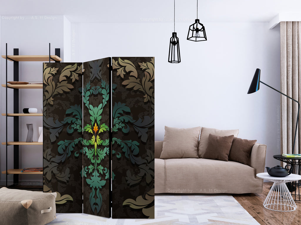 Het decoratieve vouwscherm "Vouwscherm - Dancing leaves [Room Dividers]" past uitzonderlijk mooi in een modern interieur. Het houten driedelige en tweezijdig bedrukte vouwscherm geeft niet alleen een mooie opdeling van een ruimte maar geeft ook een fantastische flair aan uw interieur. De perfectie uitvoering en het originele motief in full HD uitvoering zorgen ervoor dat de kamervouwschermen iedere ruimte een originele charme verschaffen. Een prachtig kamervouwscherm is een zeer originele versiering en kan bijvoorbeeld prima worden toegepast in woningen of dienstruimten. (kapsalon, dokterskliniek, administratiekantoor etc)