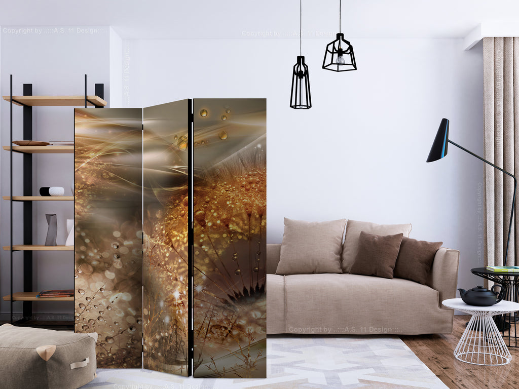 Het decoratieve vouwscherm "Vouwscherm - Dandelions World [Room Dividers]" past uitzonderlijk mooi in een modern interieur. Het houten driedelige en tweezijdig bedrukte vouwscherm geeft niet alleen een mooie opdeling van een ruimte maar geeft ook een fantastische flair aan uw interieur. De perfectie uitvoering en het originele motief in full HD uitvoering zorgen ervoor dat de kamervouwschermen iedere ruimte een originele charme verschaffen. Een prachtig kamervouwscherm is een zeer originele versiering en kan bijvoorbeeld prima worden toegepast in woningen of dienstruimten. (kapsalon, dokterskliniek, administratiekantoor etc)