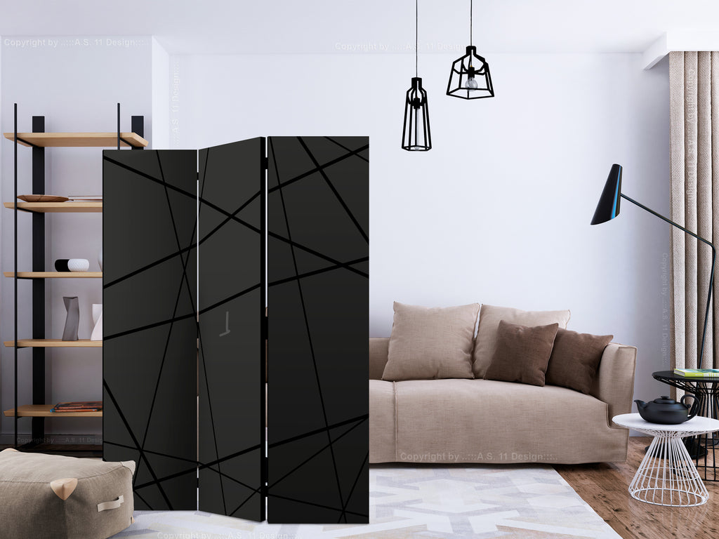 Het decoratieve vouwscherm "Vouwscherm - Dark Intersection [Room Dividers]" past uitzonderlijk mooi in een modern interieur. Het houten driedelige en tweezijdig bedrukte vouwscherm geeft niet alleen een mooie opdeling van een ruimte maar geeft ook een fantastische flair aan uw interieur. De perfectie uitvoering en het originele motief in full HD uitvoering zorgen ervoor dat de kamervouwschermen iedere ruimte een originele charme verschaffen. Een prachtig kamervouwscherm is een zeer originele versiering en kan bijvoorbeeld prima worden toegepast in woningen of dienstruimten. (kapsalon, dokterskliniek, administratiekantoor etc)