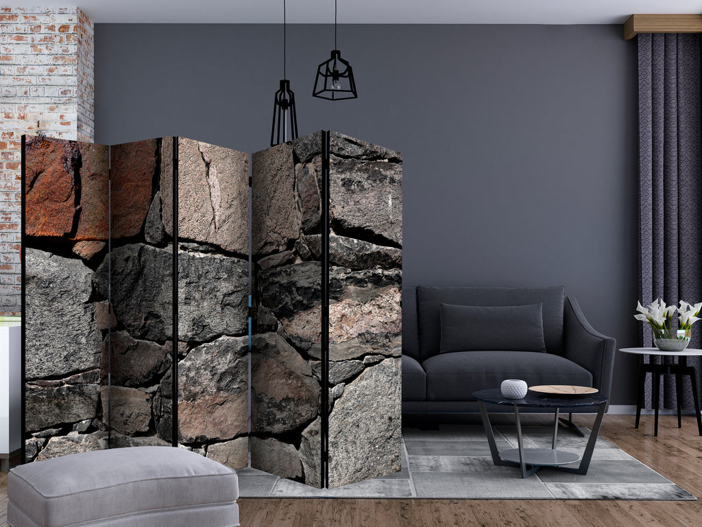 Het decoratieve vouwscherm "Vouwscherm - Dark Stones II [Room Dividers]" past uitzonderlijk mooi in een modern interieur. Het houten tweezijdig bedrukte vouwscherm geeft niet alleen een mooie opdeling van een ruimte maar geeft ook een fantastische flair aan uw interieur. De perfectie uitvoering en het originele motief in full HD uitvoering zorgen ervoor dat de kamervouwschermen iedere ruimte een originele charme verschaffen. Een prachtig kamervouwscherm is een zeer originele versiering en kan bijvoorbeeld prima worden toegepast in woningen of dienstruimten. (kapsalon, dokterskliniek, administratiekantoor etc)