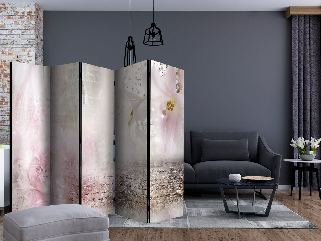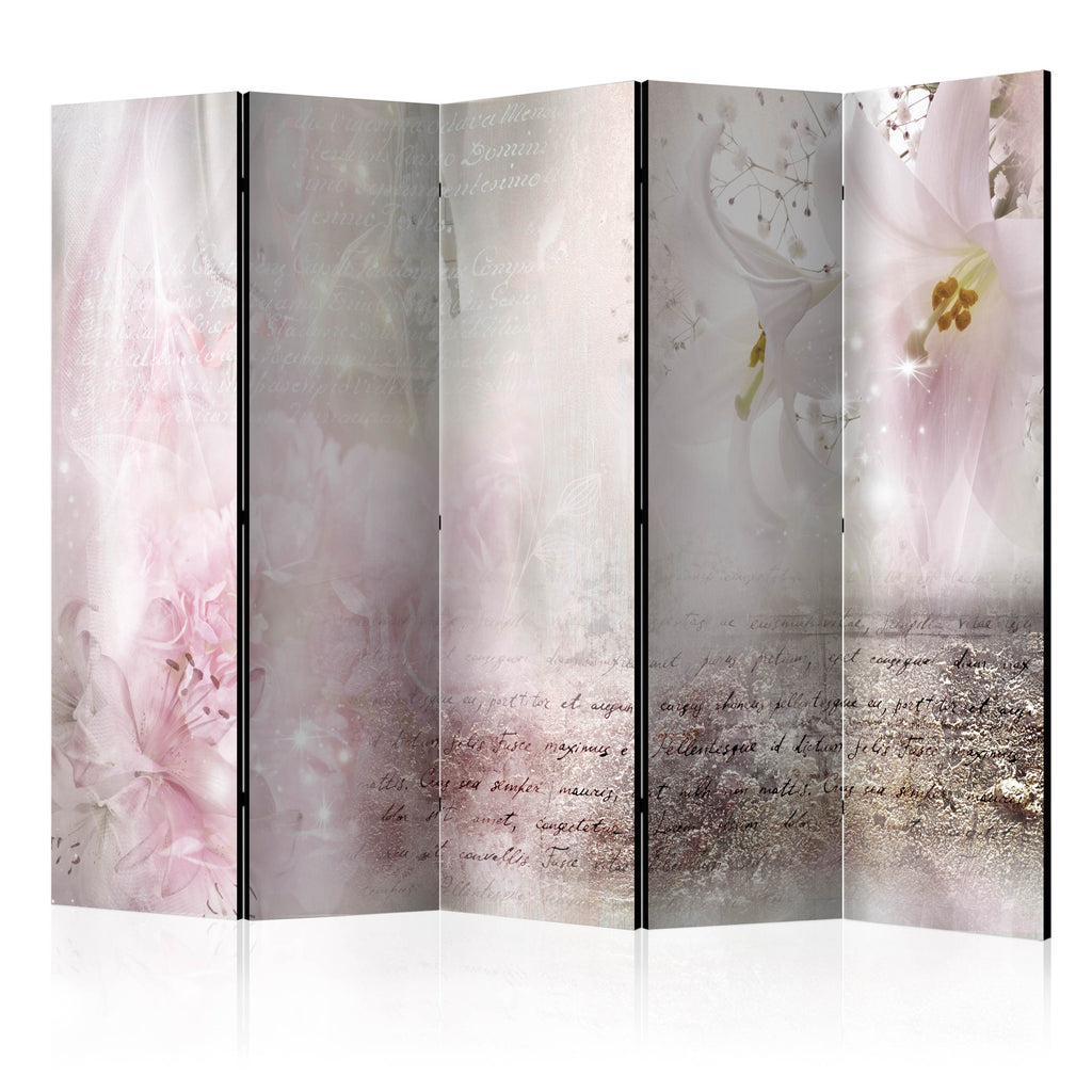 Het decoratieve vouwscherm "Vouwscherm - Delicate Lilies II [Room Dividers]" past uitzonderlijk mooi in een modern interieur. Het houten tweezijdig bedrukte vouwscherm geeft niet alleen een mooie opdeling van een ruimte maar geeft ook een fantastische flair aan uw interieur. De perfectie uitvoering en het originele motief in full HD uitvoering zorgen ervoor dat de kamervouwschermen iedere ruimte een originele charme verschaffen. Een prachtig kamervouwscherm is een zeer originele versiering en kan bijvoorbeeld prima worden toegepast in woningen of dienstruimten. (kapsalon, dokterskliniek, administratiekantoor etc)