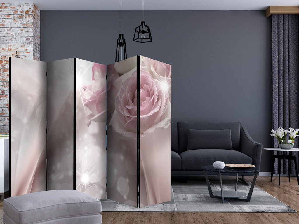 Het decoratieve vouwscherm "Vouwscherm - Dewy Roses II [Room Dividers]" past uitzonderlijk mooi in een modern interieur. Het houten tweezijdig bedrukte vouwscherm geeft niet alleen een mooie opdeling van een ruimte maar geeft ook een fantastische flair aan uw interieur. De perfectie uitvoering en het originele motief in full HD uitvoering zorgen ervoor dat de kamervouwschermen iedere ruimte een originele charme verschaffen. Een prachtig kamervouwscherm is een zeer originele versiering en kan bijvoorbeeld prima worden toegepast in woningen of dienstruimten. (kapsalon, dokterskliniek, administratiekantoor etc)
