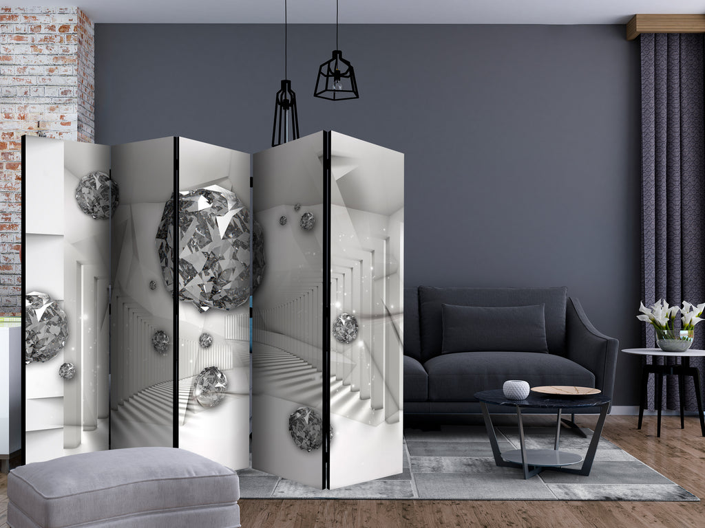 Het decoratieve vouwscherm "Vouwscherm - Diamond Chamber II II [Room Dividers]" past uitzonderlijk mooi in een modern interieur. Het houten tweezijdig bedrukte vouwscherm geeft niet alleen een mooie opdeling van een ruimte maar geeft ook een fantastische flair aan uw interieur. De perfectie uitvoering en het originele motief in full HD uitvoering zorgen ervoor dat de kamervouwschermen iedere ruimte een originele charme verschaffen. Een prachtig kamervouwscherm is een zeer originele versiering en kan bijvoorbeeld prima worden toegepast in woningen of dienstruimten. (kapsalon, dokterskliniek, administratiekantoor etc)