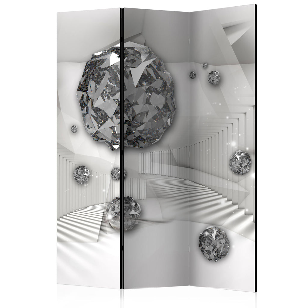 Het decoratieve vouwscherm "Vouwscherm - Diamond Chamber II [Room Dividers]" past uitzonderlijk mooi in een modern interieur. Het houten driedelige en tweezijdig bedrukte vouwscherm geeft niet alleen een mooie opdeling van een ruimte maar geeft ook een fantastische flair aan uw interieur. De perfectie uitvoering en het originele motief in full HD uitvoering zorgen ervoor dat de kamervouwschermen iedere ruimte een originele charme verschaffen. Een prachtig kamervouwscherm is een zeer originele versiering en kan bijvoorbeeld prima worden toegepast in woningen of dienstruimten. (kapsalon, dokterskliniek, administratiekantoor etc)