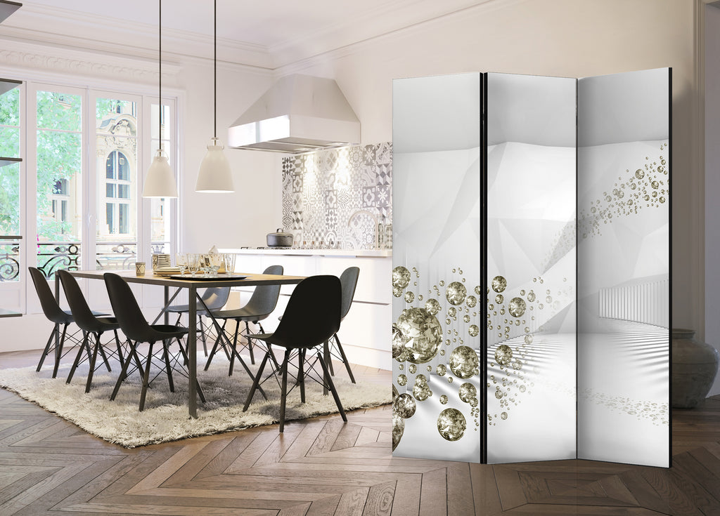 Het decoratieve vouwscherm "Vouwscherm - Diamond Corridor [Room Dividers]" past uitzonderlijk mooi in een modern interieur. Het houten driedelige en tweezijdig bedrukte vouwscherm geeft niet alleen een mooie opdeling van een ruimte maar geeft ook een fantastische flair aan uw interieur. De perfectie uitvoering en het originele motief in full HD uitvoering zorgen ervoor dat de kamervouwschermen iedere ruimte een originele charme verschaffen. Een prachtig kamervouwscherm is een zeer originele versiering en kan bijvoorbeeld prima worden toegepast in woningen of dienstruimten. (kapsalon, dokterskliniek, administratiekantoor etc)