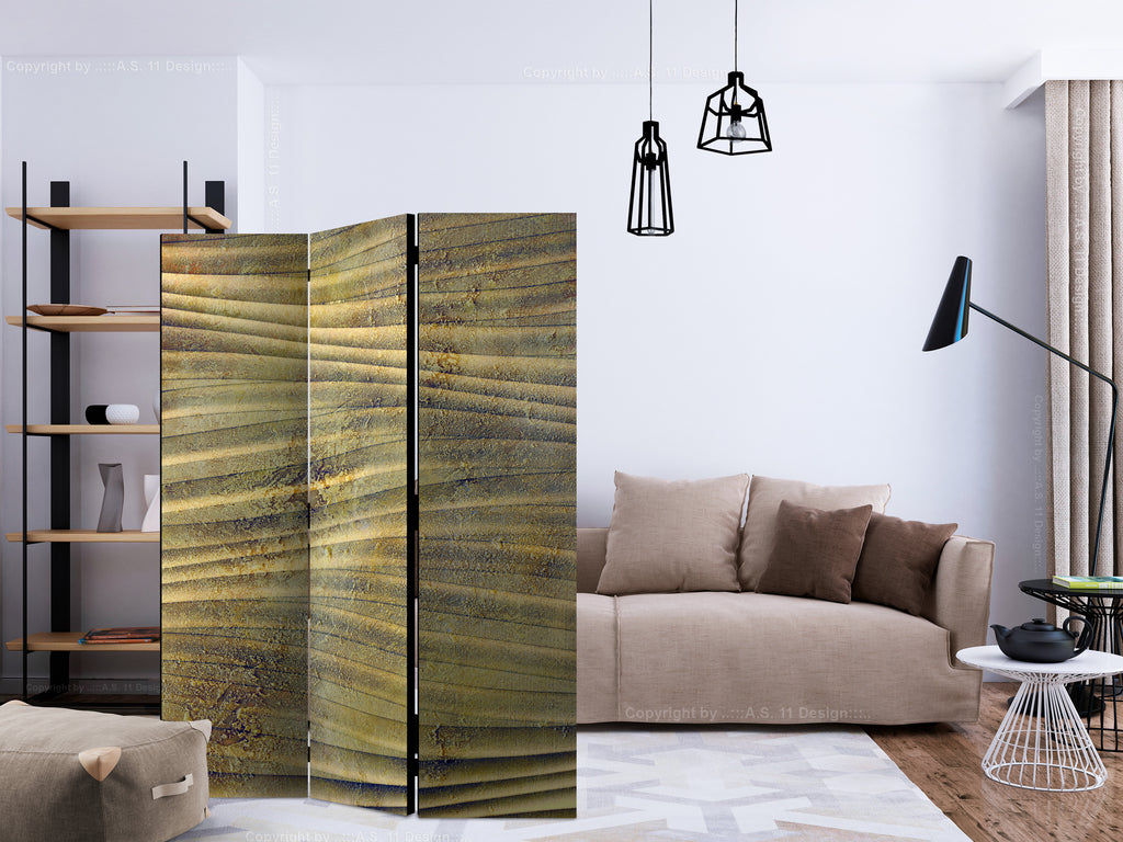 Het decoratieve vouwscherm "Vouwscherm - Dream on Sahara [Room Dividers]" past uitzonderlijk mooi in een modern interieur. Het houten driedelige en tweezijdig bedrukte vouwscherm geeft niet alleen een mooie opdeling van een ruimte maar geeft ook een fantastische flair aan uw interieur. De perfectie uitvoering en het originele motief in full HD uitvoering zorgen ervoor dat de kamervouwschermen iedere ruimte een originele charme verschaffen. Een prachtig kamervouwscherm is een zeer originele versiering en kan bijvoorbeeld prima worden toegepast in woningen of dienstruimten. (kapsalon, dokterskliniek, administratiekantoor etc)