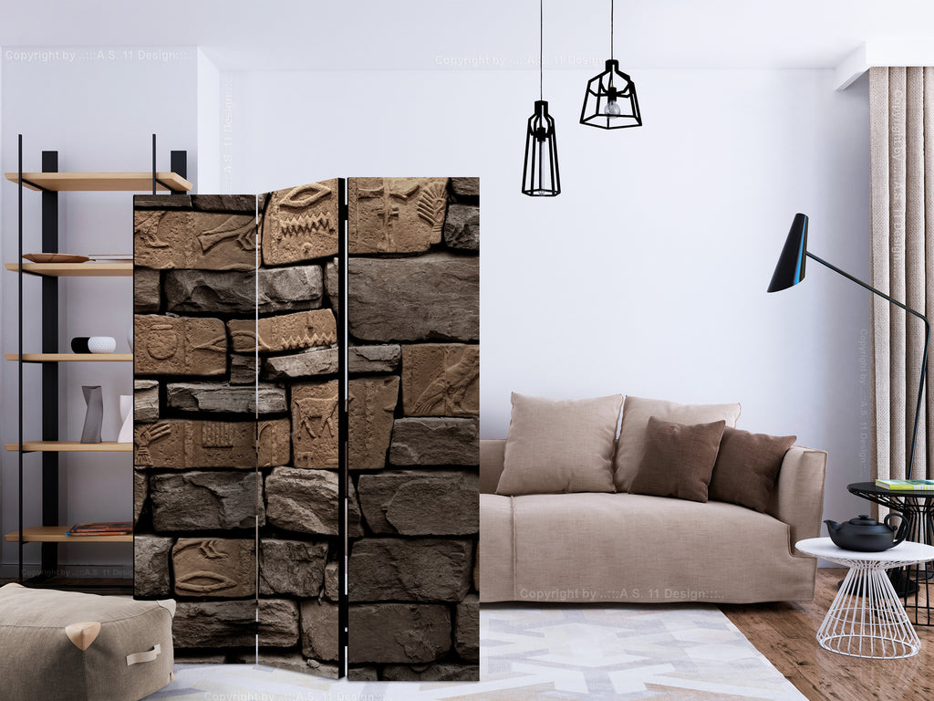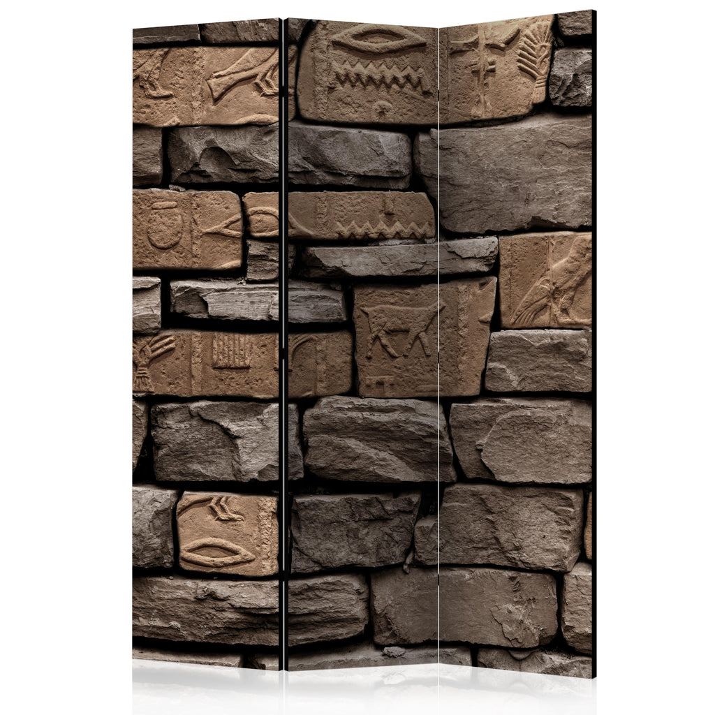Het decoratieve vouwscherm "Vouwscherm - Egyptian Stone [Room Dividers]" past uitzonderlijk mooi in een modern interieur. Het houten driedelige en tweezijdig bedrukte vouwscherm geeft niet alleen een mooie opdeling van een ruimte maar geeft ook een fantastische flair aan uw interieur. De perfectie uitvoering en het originele motief in full HD uitvoering zorgen ervoor dat de kamervouwschermen iedere ruimte een originele charme verschaffen. Een prachtig kamervouwscherm is een zeer originele versiering en kan bijvoorbeeld prima worden toegepast in woningen of dienstruimten. (kapsalon, dokterskliniek, administratiekantoor etc)