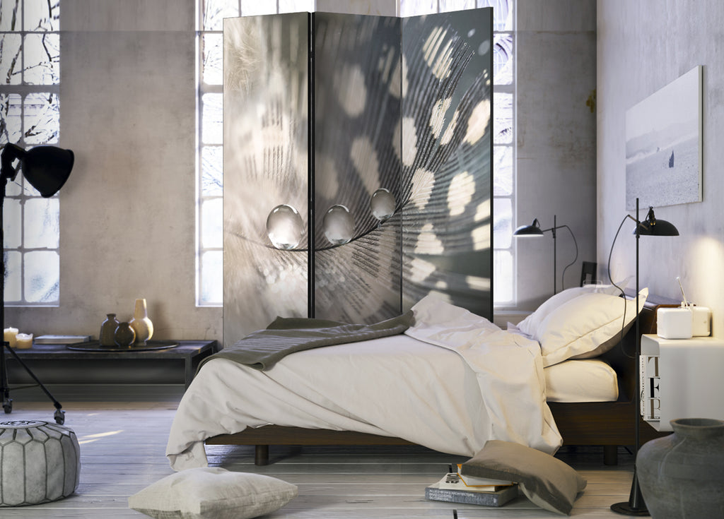 Het decoratieve vouwscherm "Vouwscherm - Elegant Feather [Room Dividers]" past uitzonderlijk mooi in een modern interieur. Het houten driedelige en tweezijdig bedrukte vouwscherm geeft niet alleen een mooie opdeling van een ruimte maar geeft ook een fantastische flair aan uw interieur. De perfectie uitvoering en het originele motief in full HD uitvoering zorgen ervoor dat de kamervouwschermen iedere ruimte een originele charme verschaffen. Een prachtig kamervouwscherm is een zeer originele versiering en kan bijvoorbeeld prima worden toegepast in woningen of dienstruimten. (kapsalon, dokterskliniek, administratiekantoor etc)
