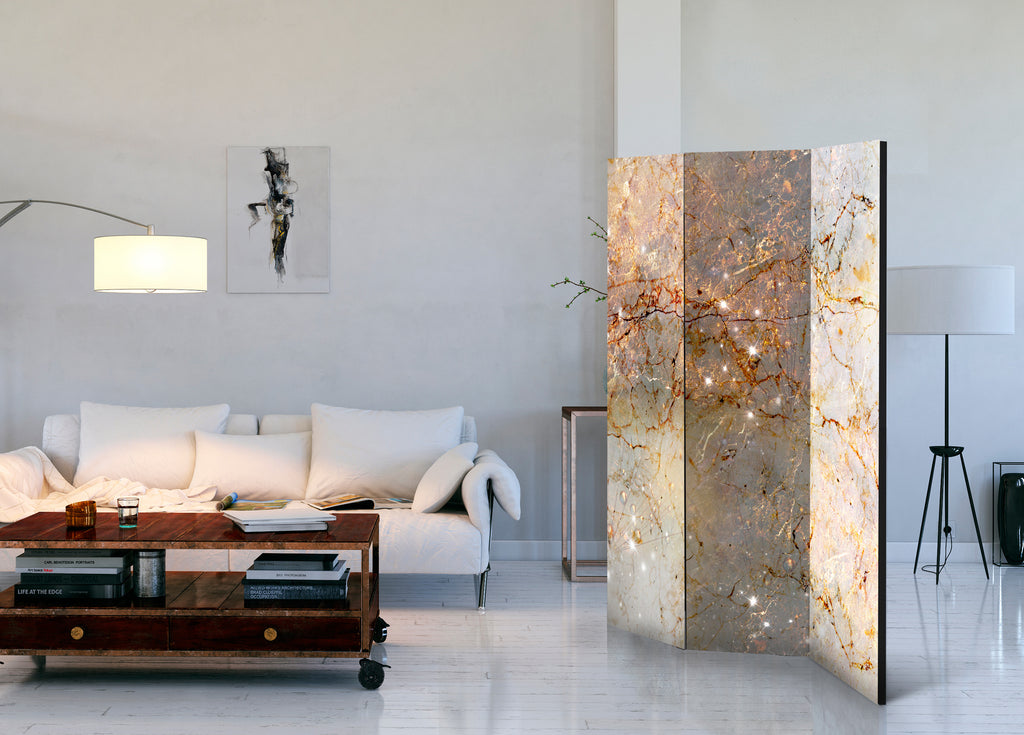 Het decoratieve vouwscherm "Vouwscherm - Enchanted in Marble [Room Dividers]" past uitzonderlijk mooi in een modern interieur. Het houten driedelige en tweezijdig bedrukte vouwscherm geeft niet alleen een mooie opdeling van een ruimte maar geeft ook een fantastische flair aan uw interieur. De perfectie uitvoering en het originele motief in full HD uitvoering zorgen ervoor dat de kamervouwschermen iedere ruimte een originele charme verschaffen. Een prachtig kamervouwscherm is een zeer originele versiering en kan bijvoorbeeld prima worden toegepast in woningen of dienstruimten. (kapsalon, dokterskliniek, administratiekantoor etc)