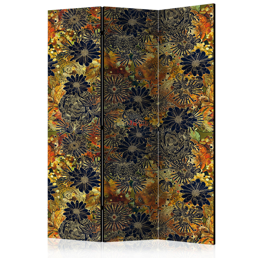 Het decoratieve vouwscherm "Vouwscherm - Floral Madness [Room Dividers]" past uitzonderlijk mooi in een modern interieur. Het houten driedelige en tweezijdig bedrukte vouwscherm geeft niet alleen een mooie opdeling van een ruimte maar geeft ook een fantastische flair aan uw interieur. De perfectie uitvoering en het originele motief in full HD uitvoering zorgen ervoor dat de kamervouwschermen iedere ruimte een originele charme verschaffen. Een prachtig kamervouwscherm is een zeer originele versiering en kan bijvoorbeeld prima worden toegepast in woningen of dienstruimten. (kapsalon, dokterskliniek, administratiekantoor etc)