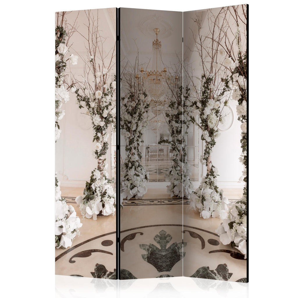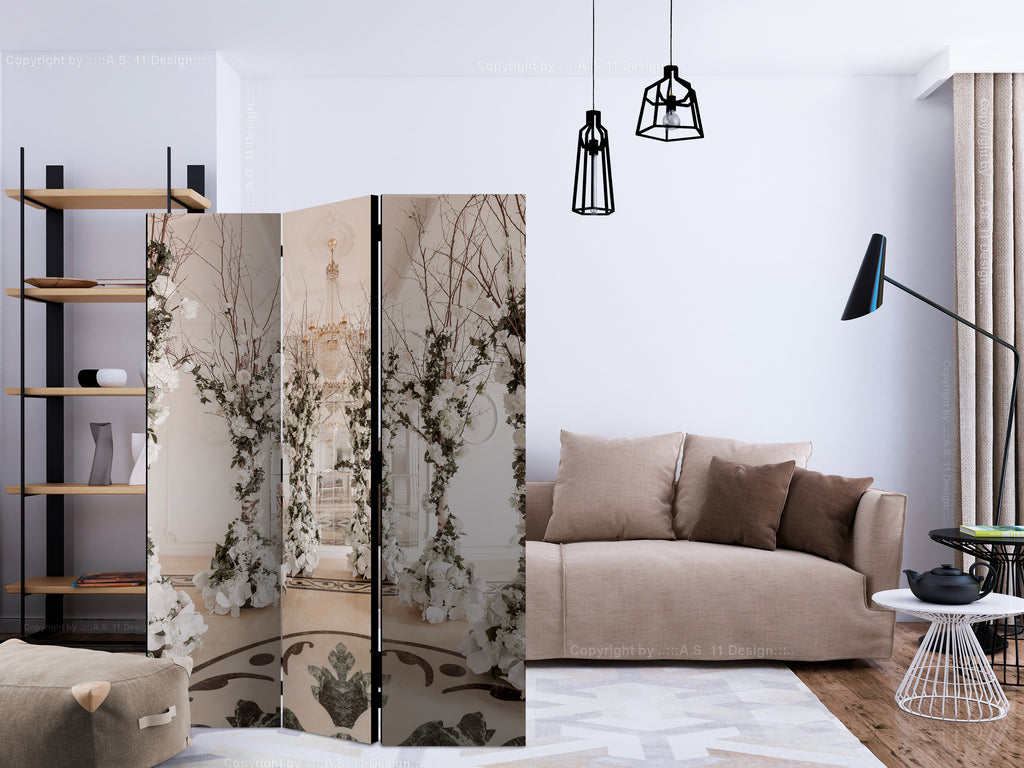 Het decoratieve vouwscherm "Vouwscherm - Flower Chamber [Room Dividers]" past uitzonderlijk mooi in een modern interieur. Het houten driedelige en tweezijdig bedrukte vouwscherm geeft niet alleen een mooie opdeling van een ruimte maar geeft ook een fantastische flair aan uw interieur. De perfectie uitvoering en het originele motief in full HD uitvoering zorgen ervoor dat de kamervouwschermen iedere ruimte een originele charme verschaffen. Een prachtig kamervouwscherm is een zeer originele versiering en kan bijvoorbeeld prima worden toegepast in woningen of dienstruimten. (kapsalon, dokterskliniek, administratiekantoor etc)