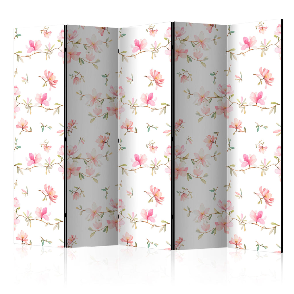 Het decoratieve vouwscherm "Vouwscherm - Fresh Magnolias II [Room Dividers]" past uitzonderlijk mooi in een modern interieur. Het houten tweezijdig bedrukte vouwscherm geeft niet alleen een mooie opdeling van een ruimte maar geeft ook een fantastische flair aan uw interieur. De perfectie uitvoering en het originele motief in full HD uitvoering zorgen ervoor dat de kamervouwschermen iedere ruimte een originele charme verschaffen. Een prachtig kamervouwscherm is een zeer originele versiering en kan bijvoorbeeld prima worden toegepast in woningen of dienstruimten. (kapsalon, dokterskliniek, administratiekantoor etc)