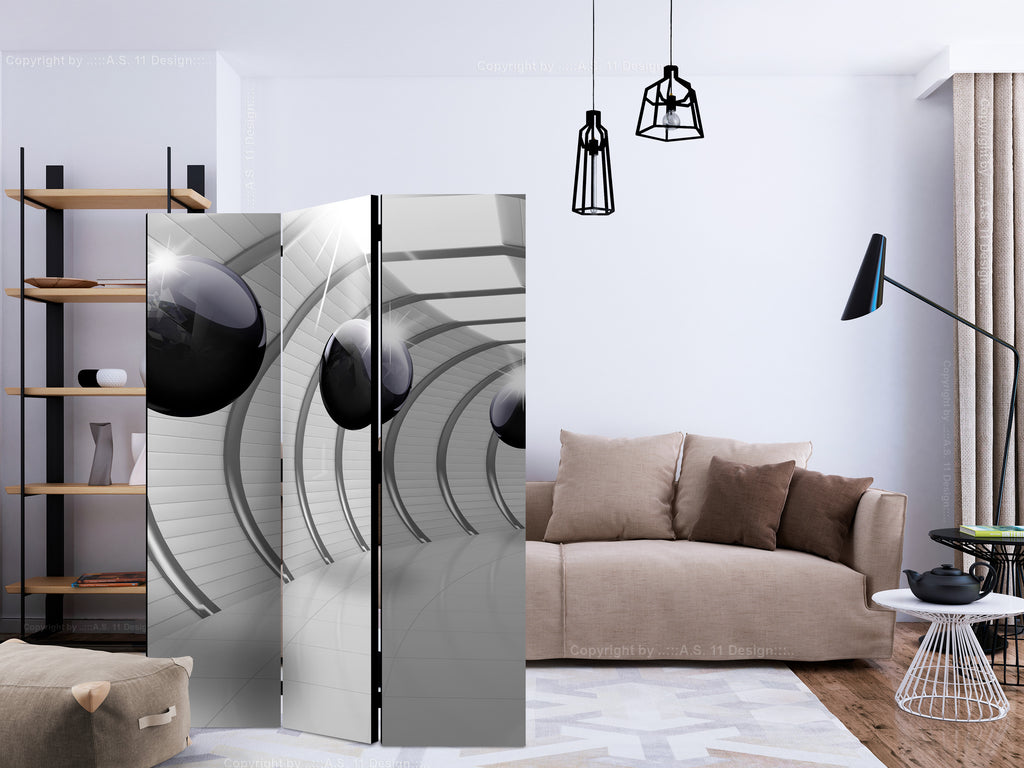 Het decoratieve vouwscherm "Vouwscherm - Futuristic Tunnel II [Room Dividers]" past uitzonderlijk mooi in een modern interieur. Het houten driedelige en tweezijdig bedrukte vouwscherm geeft niet alleen een mooie opdeling van een ruimte maar geeft ook een fantastische flair aan uw interieur. De perfectie uitvoering en het originele motief in full HD uitvoering zorgen ervoor dat de kamervouwschermen iedere ruimte een originele charme verschaffen. Een prachtig kamervouwscherm is een zeer originele versiering en kan bijvoorbeeld prima worden toegepast in woningen of dienstruimten. (kapsalon, dokterskliniek, administratiekantoor etc)