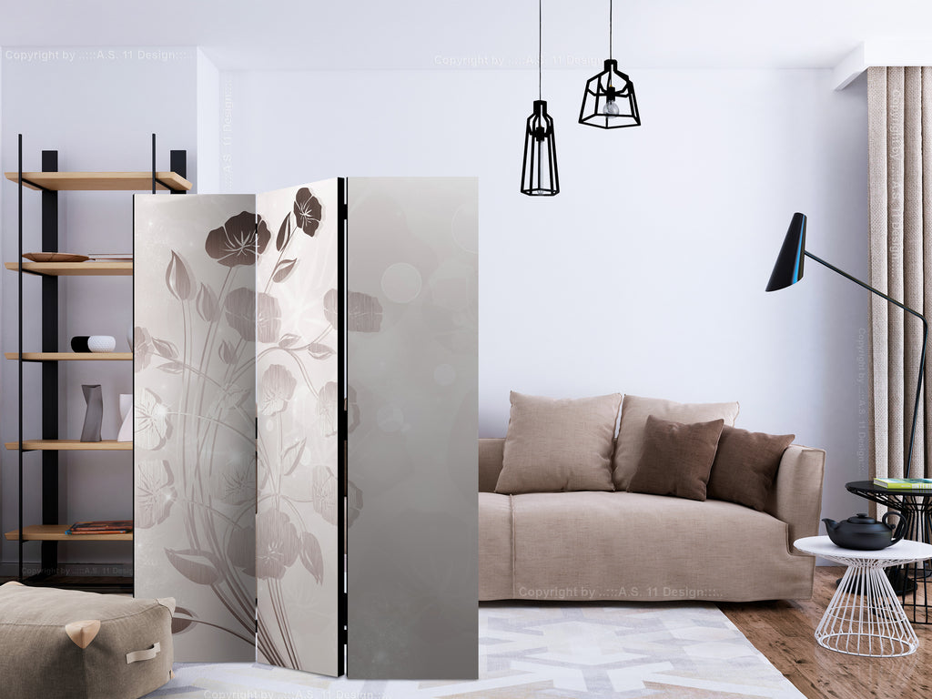 Het decoratieve vouwscherm "Vouwscherm - Gentleness of Flowers [Room Dividers]" past uitzonderlijk mooi in een modern interieur. Het houten driedelige en tweezijdig bedrukte vouwscherm geeft niet alleen een mooie opdeling van een ruimte maar geeft ook een fantastische flair aan uw interieur. De perfectie uitvoering en het originele motief in full HD uitvoering zorgen ervoor dat de kamervouwschermen iedere ruimte een originele charme verschaffen. Een prachtig kamervouwscherm is een zeer originele versiering en kan bijvoorbeeld prima worden toegepast in woningen of dienstruimten. (kapsalon, dokterskliniek, administratiekantoor etc)