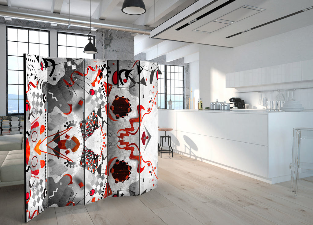 Het decoratieve vouwscherm "Vouwscherm - Geometric Cosmos II [Room Dividers]" past uitzonderlijk mooi in een modern interieur. Het houten tweezijdig bedrukte vouwscherm geeft niet alleen een mooie opdeling van een ruimte maar geeft ook een fantastische flair aan uw interieur. De perfectie uitvoering en het originele motief in full HD uitvoering zorgen ervoor dat de kamervouwschermen iedere ruimte een originele charme verschaffen. Een prachtig kamervouwscherm is een zeer originele versiering en kan bijvoorbeeld prima worden toegepast in woningen of dienstruimten. (kapsalon, dokterskliniek, administratiekantoor etc)