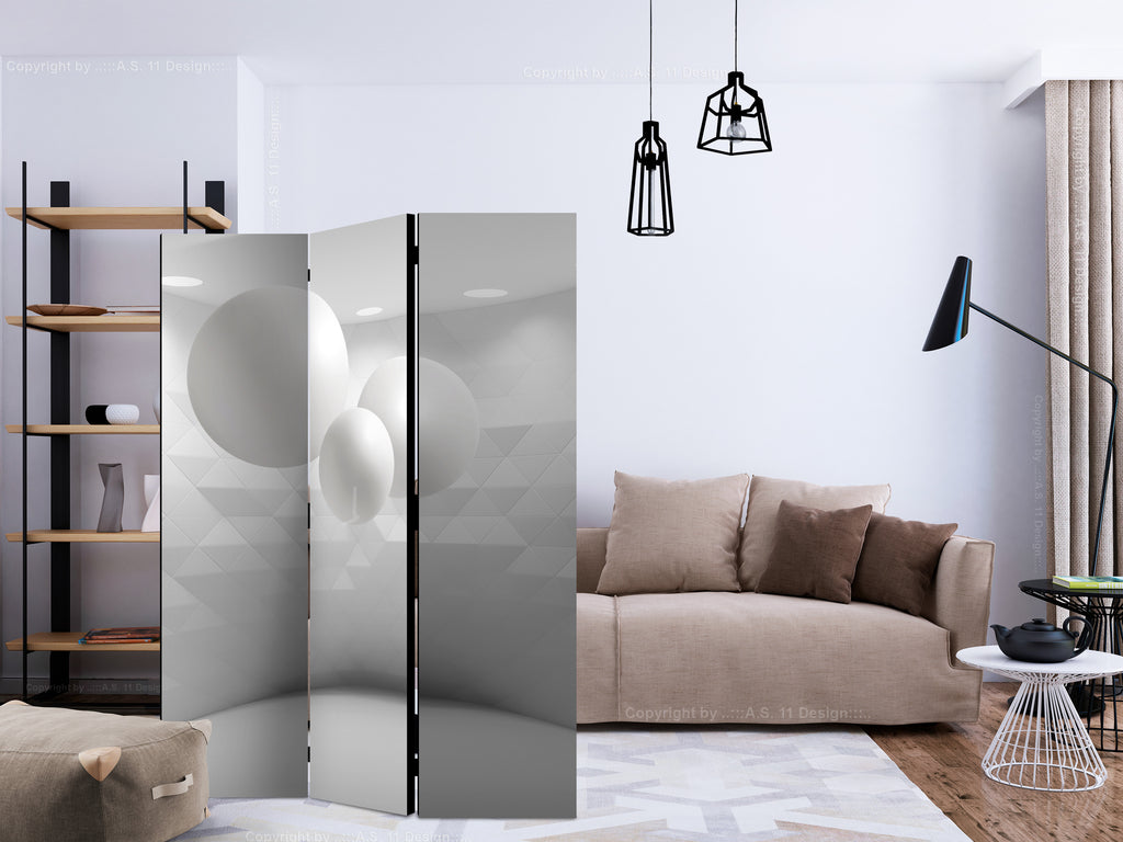 Het decoratieve vouwscherm "Vouwscherm - Geometric Room [Room Dividers]" past uitzonderlijk mooi in een modern interieur. Het houten driedelige en tweezijdig bedrukte vouwscherm geeft niet alleen een mooie opdeling van een ruimte maar geeft ook een fantastische flair aan uw interieur. De perfectie uitvoering en het originele motief in full HD uitvoering zorgen ervoor dat de kamervouwschermen iedere ruimte een originele charme verschaffen. Een prachtig kamervouwscherm is een zeer originele versiering en kan bijvoorbeeld prima worden toegepast in woningen of dienstruimten. (kapsalon, dokterskliniek, administratiekantoor etc)