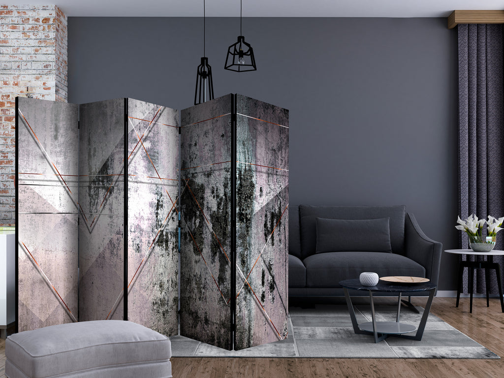 Het decoratieve vouwscherm "Vouwscherm - Geometric Wall II [Room Dividers]" past uitzonderlijk mooi in een modern interieur. Het houten tweezijdig bedrukte vouwscherm geeft niet alleen een mooie opdeling van een ruimte maar geeft ook een fantastische flair aan uw interieur. De perfectie uitvoering en het originele motief in full HD uitvoering zorgen ervoor dat de kamervouwschermen iedere ruimte een originele charme verschaffen. Een prachtig kamervouwscherm is een zeer originele versiering en kan bijvoorbeeld prima worden toegepast in woningen of dienstruimten. (kapsalon, dokterskliniek, administratiekantoor etc)