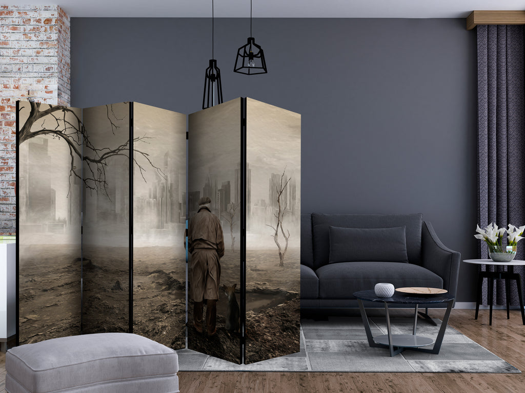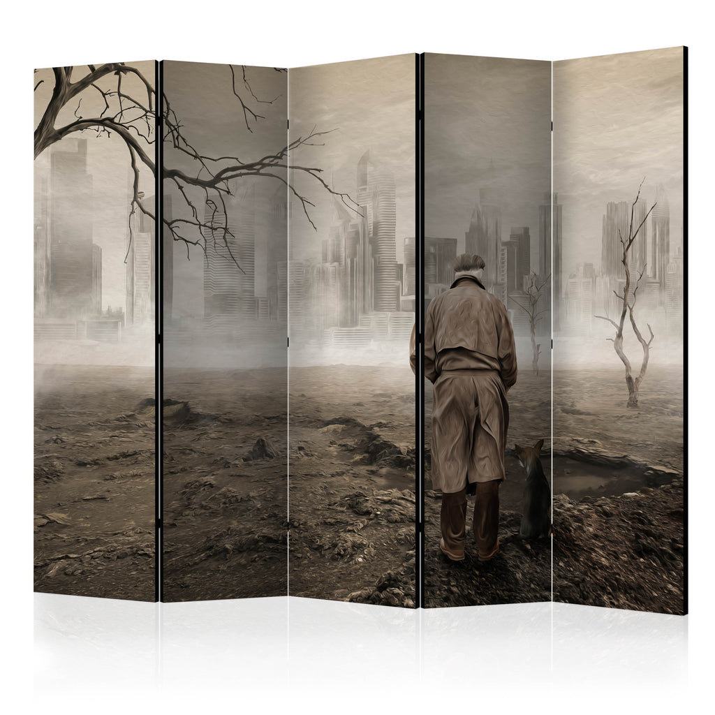 Het decoratieve vouwscherm "Vouwscherm - Ghost's city II [Room Dividers]" past uitzonderlijk mooi in een modern interieur. Het houten tweezijdig bedrukte vouwscherm geeft niet alleen een mooie opdeling van een ruimte maar geeft ook een fantastische flair aan uw interieur. De perfectie uitvoering en het originele motief in full HD uitvoering zorgen ervoor dat de kamervouwschermen iedere ruimte een originele charme verschaffen. Een prachtig kamervouwscherm is een zeer originele versiering en kan bijvoorbeeld prima worden toegepast in woningen of dienstruimten. (kapsalon, dokterskliniek, administratiekantoor etc)