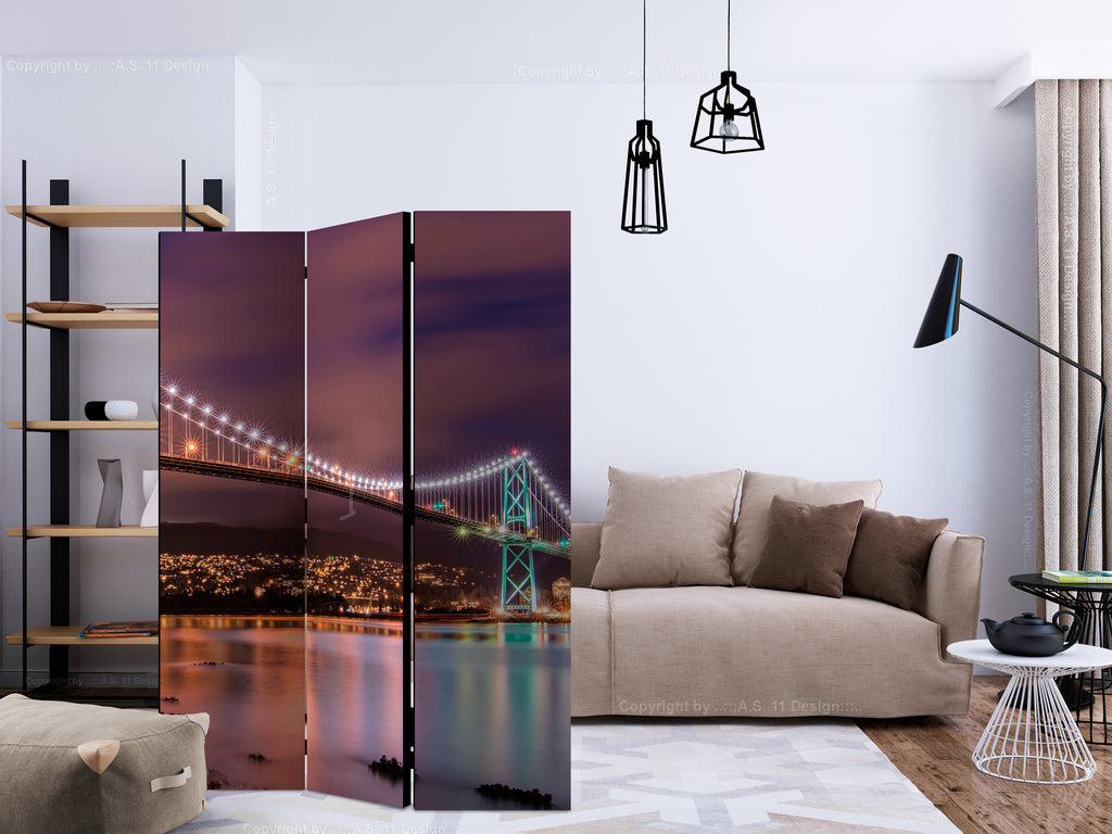 Het decoratieve vouwscherm "Vouwscherm - Glow Above the City [Room Dividers]" past uitzonderlijk mooi in een modern interieur. Het houten driedelige en tweezijdig bedrukte vouwscherm geeft niet alleen een mooie opdeling van een ruimte maar geeft ook een fantastische flair aan uw interieur. De perfectie uitvoering en het originele motief in full HD uitvoering zorgen ervoor dat de kamervouwschermen iedere ruimte een originele charme verschaffen. Een prachtig kamervouwscherm is een zeer originele versiering en kan bijvoorbeeld prima worden toegepast in woningen of dienstruimten. (kapsalon, dokterskliniek, administratiekantoor etc)