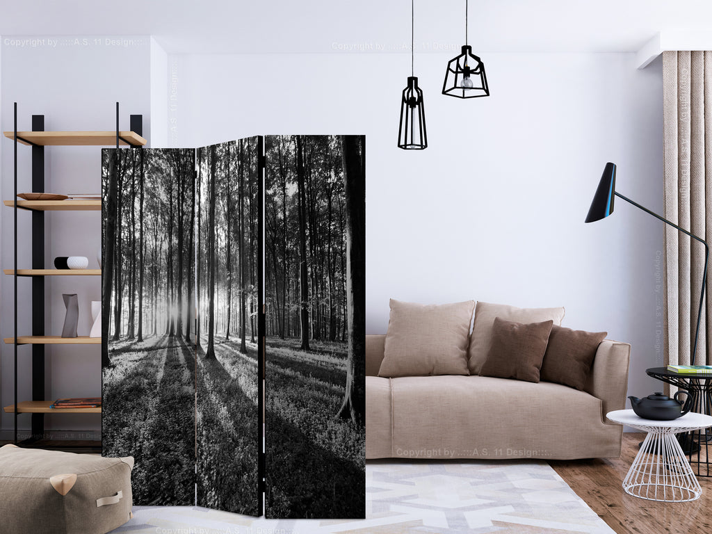 Het decoratieve vouwscherm "Vouwscherm - Grey Wilderness [Room Dividers]" past uitzonderlijk mooi in een modern interieur. Het houten driedelige en tweezijdig bedrukte vouwscherm geeft niet alleen een mooie opdeling van een ruimte maar geeft ook een fantastische flair aan uw interieur. De perfectie uitvoering en het originele motief in full HD uitvoering zorgen ervoor dat de kamervouwschermen iedere ruimte een originele charme verschaffen. Een prachtig kamervouwscherm is een zeer originele versiering en kan bijvoorbeeld prima worden toegepast in woningen of dienstruimten. (kapsalon, dokterskliniek, administratiekantoor etc)