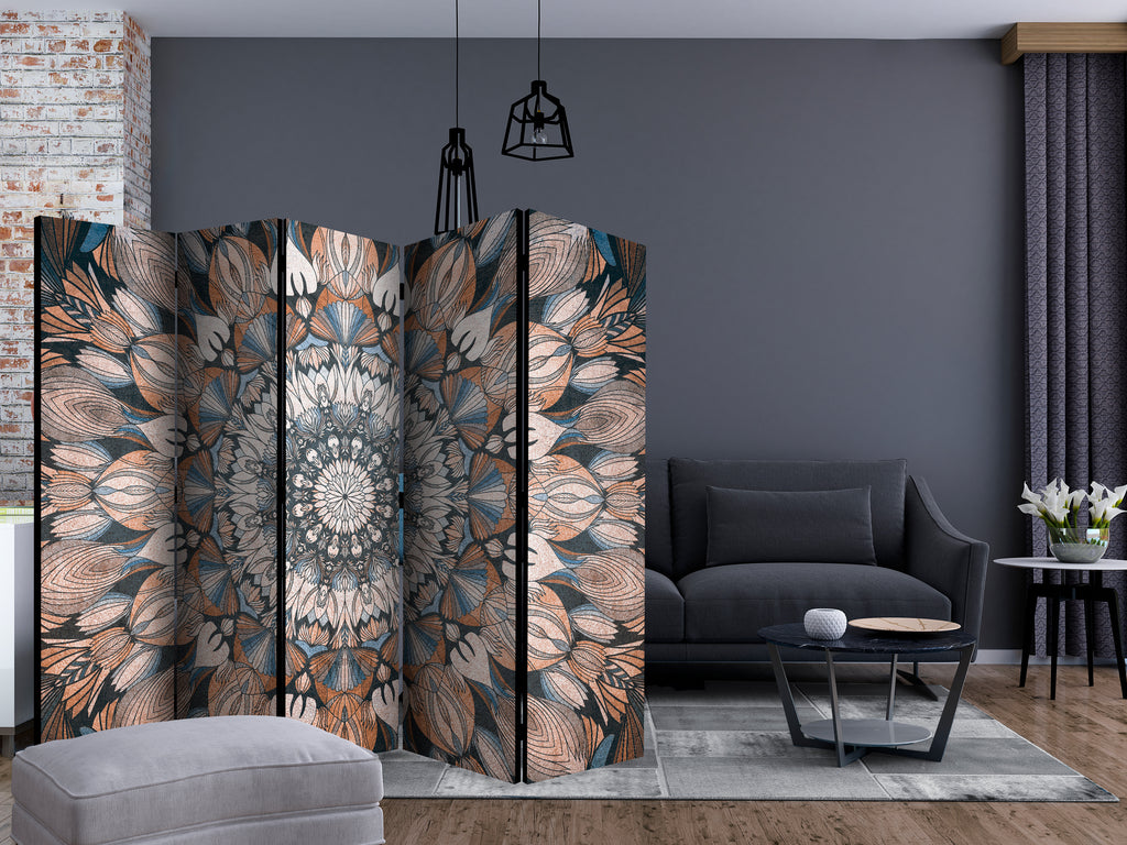 Het decoratieve vouwscherm "Vouwscherm - Hetman Mandala II [Room Dividers]" past uitzonderlijk mooi in een modern interieur. Het houten tweezijdig bedrukte vouwscherm geeft niet alleen een mooie opdeling van een ruimte maar geeft ook een fantastische flair aan uw interieur. De perfectie uitvoering en het originele motief in full HD uitvoering zorgen ervoor dat de kamervouwschermen iedere ruimte een originele charme verschaffen. Een prachtig kamervouwscherm is een zeer originele versiering en kan bijvoorbeeld prima worden toegepast in woningen of dienstruimten. (kapsalon, dokterskliniek, administratiekantoor etc)
