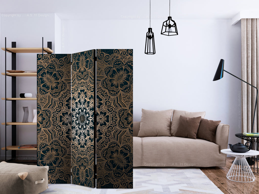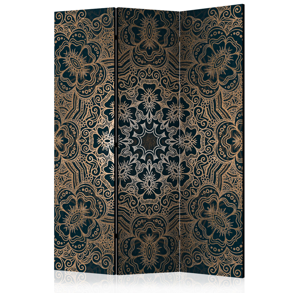 Het decoratieve vouwscherm "Vouwscherm - Intricate Pattern [Room Dividers]" past uitzonderlijk mooi in een modern interieur. Het houten driedelige en tweezijdig bedrukte vouwscherm geeft niet alleen een mooie opdeling van een ruimte maar geeft ook een fantastische flair aan uw interieur. De perfectie uitvoering en het originele motief in full HD uitvoering zorgen ervoor dat de kamervouwschermen iedere ruimte een originele charme verschaffen. Een prachtig kamervouwscherm is een zeer originele versiering en kan bijvoorbeeld prima worden toegepast in woningen of dienstruimten. (kapsalon, dokterskliniek, administratiekantoor etc)