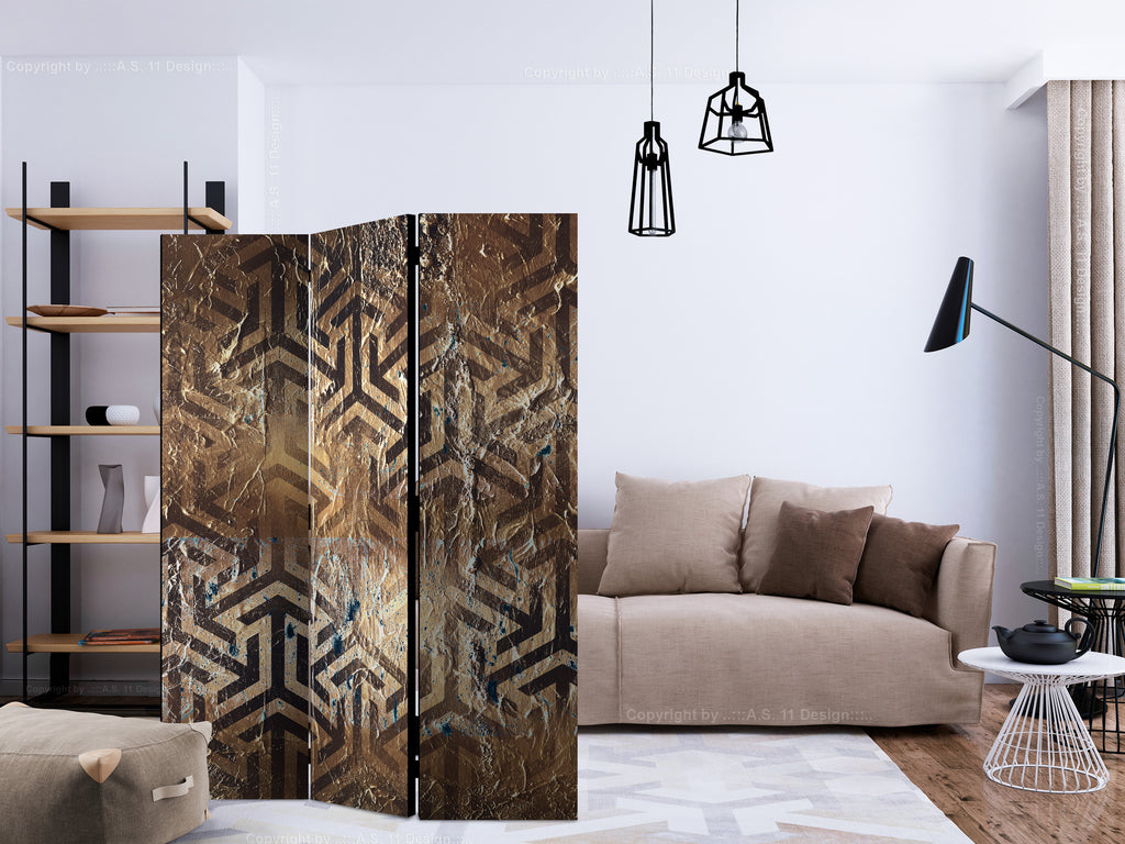 Het decoratieve vouwscherm "Vouwscherm - Labyrinth of the Minotaur [Room Dividers]" past uitzonderlijk mooi in een modern interieur. Het houten driedelige en tweezijdig bedrukte vouwscherm geeft niet alleen een mooie opdeling van een ruimte maar geeft ook een fantastische flair aan uw interieur. De perfectie uitvoering en het originele motief in full HD uitvoering zorgen ervoor dat de kamervouwschermen iedere ruimte een originele charme verschaffen. Een prachtig kamervouwscherm is een zeer originele versiering en kan bijvoorbeeld prima worden toegepast in woningen of dienstruimten. (kapsalon, dokterskliniek, administratiekantoor etc)