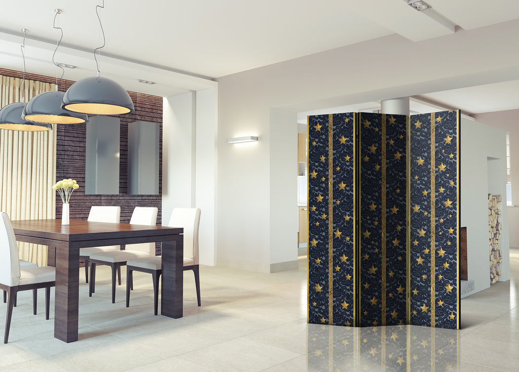 Het decoratieve vouwscherm "Vouwscherm - Lace Constellation [Room Dividers]" past uitzonderlijk mooi in een modern interieur. Het houten driedelige en tweezijdig bedrukte vouwscherm geeft niet alleen een mooie opdeling van een ruimte maar geeft ook een fantastische flair aan uw interieur. De perfectie uitvoering en het originele motief in full HD uitvoering zorgen ervoor dat de kamervouwschermen iedere ruimte een originele charme verschaffen. Een prachtig kamervouwscherm is een zeer originele versiering en kan bijvoorbeeld prima worden toegepast in woningen of dienstruimten. (kapsalon, dokterskliniek, administratiekantoor etc)