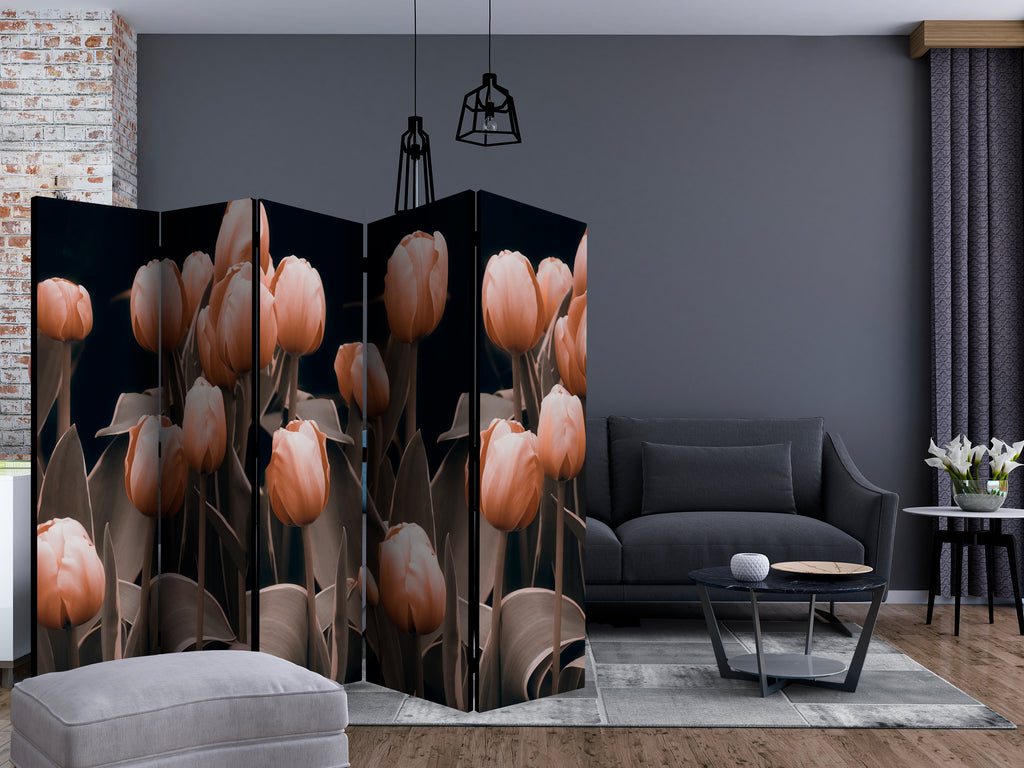 Het decoratieve vouwscherm "Vouwscherm - Ladies among the flowers II [Room Dividers]" past uitzonderlijk mooi in een modern interieur. Het houten tweezijdig bedrukte vouwscherm geeft niet alleen een mooie opdeling van een ruimte maar geeft ook een fantastische flair aan uw interieur. De perfectie uitvoering en het originele motief in full HD uitvoering zorgen ervoor dat de kamervouwschermen iedere ruimte een originele charme verschaffen. Een prachtig kamervouwscherm is een zeer originele versiering en kan bijvoorbeeld prima worden toegepast in woningen of dienstruimten. (kapsalon, dokterskliniek, administratiekantoor etc)